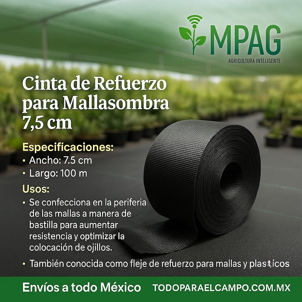 La cinta de refuerzo, también conocida como fleje, es un componente esencial en la estructura de las mallas y plásticos de invernadero. Se confecciona en la periferia de las mallas a manera de bastilla para aumentar su resistencia al manejo y facilitar la colocación de ojillos, garantizando una instalación más duradera y eficiente.