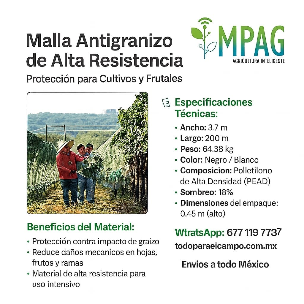 🌱 Ideal para invernaderos, huertos, viñedos y cultivos frutales expuestos a condiciones climáticas adversas.
